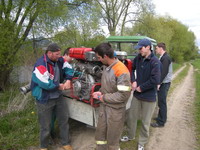 | ...a ďalší členovia OHZ pri vodnom útoku.